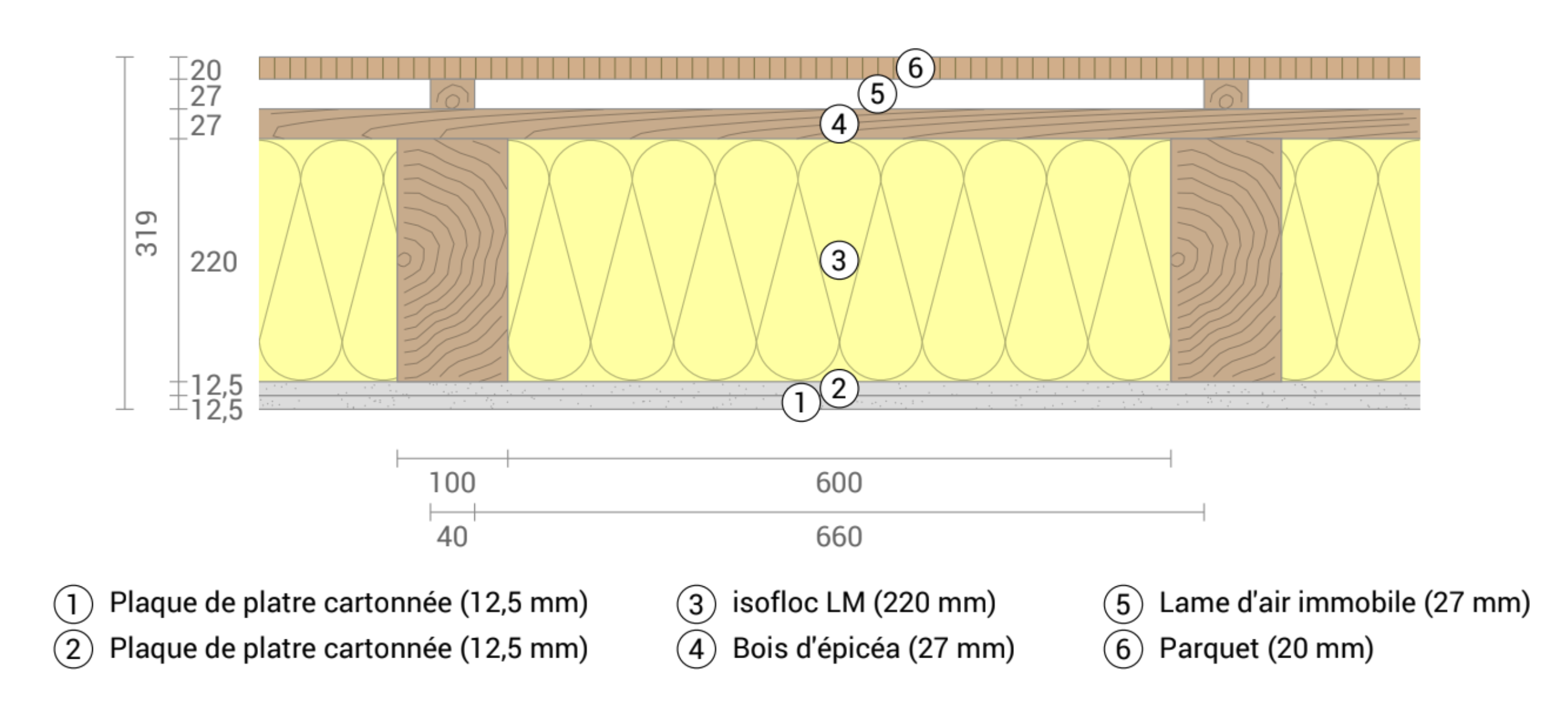 - Thermique & phonique : plancher plus chaud au rez-de-chaussée, et réduction notable du bruit – solidien (impact) et aérien (voix).